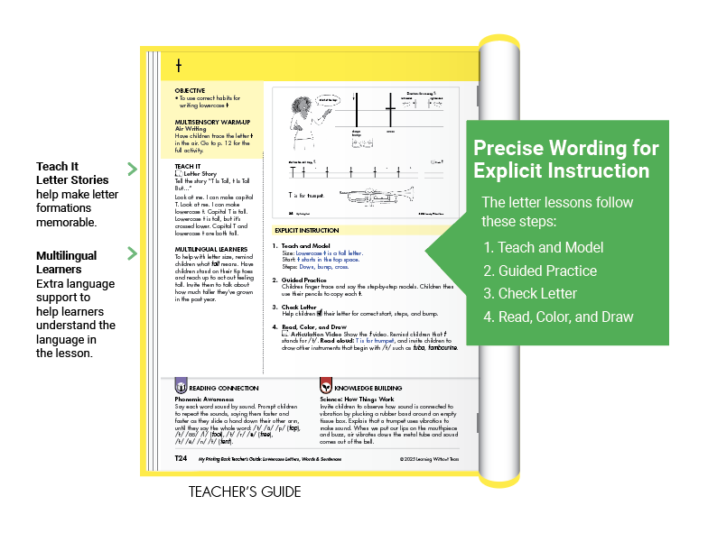 - Teacher’s Guides include multisensory activities, differentiation strategies, ideas for multilingual learners, and progress monitoring.